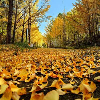 「広島市立大学」では、キャンパス内の憩いの場である芝生広場を囲うようにイチョウが並んでいます。11月には広場一面が黄色で彩られ、青空とのコントラストが最高!イチョウ並木とはまた違った良さがあり、ランチや読書、写真撮影など思い思いの時間を過ごせる素敵な空間になるそうです。キャンパスライフにも彩りを添えてくれるイチョウ、一度は自分の目で見てみたいですね。