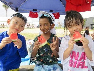 プールのあとはキンキンに冷えたスイカをパクリッ!とても夏らしい体験ができ、子どもたちはみんな大満足でした。