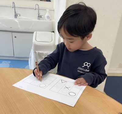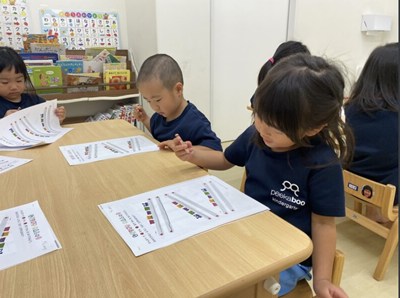 ピーカブー幼稚舎では人気の習い事だけでなく、学習系プリントの活動も導入。年少クラスは先生の手作りプリント、年中・年長クラスでは「こぐま会」の教材を使用します。30分~40分ほどかけて、楽しみながらも集中して取り組みます。中には1時間やり続ける子もいるそうですよ♪