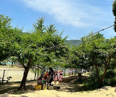 普段ランチルームとして使用されている「サルナート」で活動したりおやつを食べたり、園舎の周りにある「わんぱく広場」「プレイガーデン」で遊んだり…いろいろな場所で、友だちと楽しく過ごせる時間が設けられているんです。