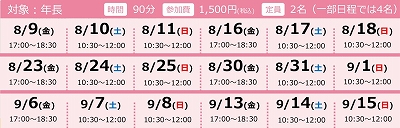 ※各教室、9月以降や平日等上記日程以降も体験会を開催しております。