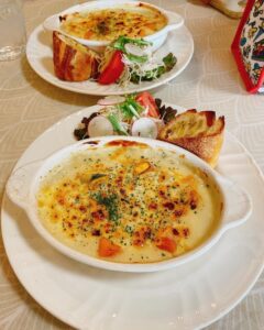 約30年の歴史がある「ANASTASIA」は、アンティーク雑貨や婦人服販売店とカフェが併設されたお店です。ランチメニューはグラタンやお肉料理、魚のグリルなどどれもおいしそうなものばかり♡自家製ケーキやフレンチトーストなど、コーヒーのほろ苦さにぴったりな甘いデザートもたくさんあります。無農薬の野菜や有機米をはじめとした、こだわりの食材が使われているため、安心して食事やカフェタイムを楽しむことができますよ。
