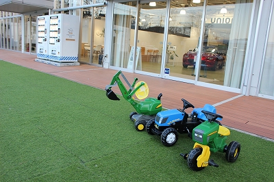 無料で貸し出してもらえるおもちゃの車やテラスも!