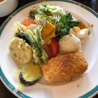 日替わりランチは、メイン料理とサクサクの天ぷらにスープ・ライス・サラダ付き。揚げたてサクサクの天ぷらが美味しいとSNSや口コミサイトで話題になっています。他にも土・日10食限定のビーフステーキランチや、ケーキセットなどのカフェメニューも充実!テラス席はペットOKなので、わんちゃんとのドライブにもおすすめです。
