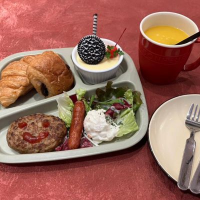 焼きたてのフルーツパイや軽食を、淹れ方にこだわった紅茶と一緒に味わえるお店。スイーツメニューが多めですが、サンドイッチやクロックムッシュ、パスタなどの食事系も充実しています♪さらに嬉しいポイントは、キッズメニューがあること!ハンバーグにウインナー、サラダと2種類のパン、さらにドリンクとデザートがついたプレートになっています。子連れでも気兼ねなく、ティータイムやランチを楽しめるのが魅力です。