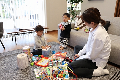 当日は、座談会を行っているすぐとなりのリビングに託児スペースも登場!ママたちが座談会に参加している間、保育士さんが託児を行いましたよ。