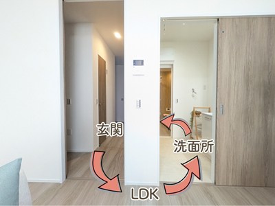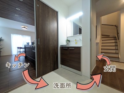 キッチン⇔洗面所が直結!面倒な移動は最小限に