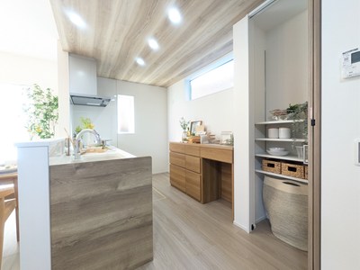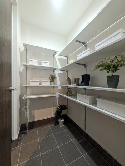 理想の暮らしを叶える上では、収納計画も見逃せません。ミモザココの収納は、生活動線のすぐそばにあることが大きな特徴。たとえば、キッチン横のパントリーは、買い物帰りに荷物をスムーズに収納できます。家事動線上に収納があることで、「あとで片付けなきゃ」とプレッシャーになりがちな、“名もなき家事”を減らせるわけですね!