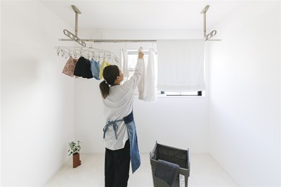 雨の日や花粉の季節はもちろん、寒さや暑さを気にすることなく洗濯物を干せるのは快適そのもの♪毎朝天気予報をチェックする手間を減らせ、部屋干し特有の生活感が出にくい点も、ママにとってはうれしいポイントですね!