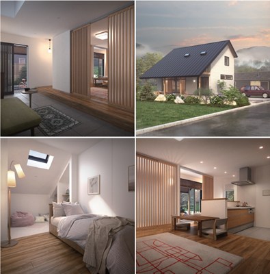 続いて見せていただいたのが、セミオーダー住宅の「710AM AME(アメ)」。晴れの日には光と風を、雨の日にはその音や気配が楽しめる、自然を肌で感じられる住まいです。