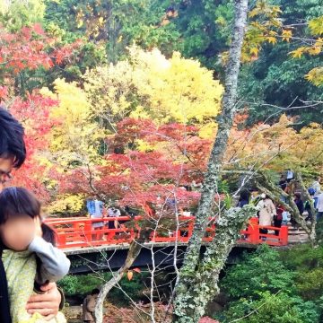 橋を渡って山をのぼっていくとロープウェーのりばに到着しますが、子ども連れで山道を進むのはなかなか難しいですよね。紅葉谷公園までのルートでもしっかり紅葉狩りを楽しめるので、子ども連れならここをメインにしてみてはいかがでしょうか?