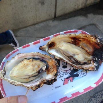 食べ歩きにぴったりな焼き牡蠣を販売するお店もあります。公共交通機関でのおでかけなら、大人は牡蠣とビールで至福のひととき♡そんな楽しみ方もいいですね♪