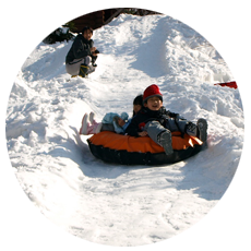 小さい子連れの家族におすすめなのは、駐車場そばにある全長100メートルの「雪遊び広場」。緩やかなゲレンデはソリ遊びにはもちろん、かまくらや雪だるま作りも楽しめます。一方、スキー場は「子どもにもそろそろスキーデビューさせたい!」という家族にもおすすめ。リフトはありませんが、その分徒歩でも登れるくらい緩やかな傾斜です。スキーはまだ難しい小さな子どもでも楽しめますよ♪スノーフィールドではレンタルウェアのサービスをしていないので、必要な場合は近隣のめがひらスキー場近くにあるレンタルショップを利用しましょう。ソリや長靴などは公園内でレンタルが可能です。