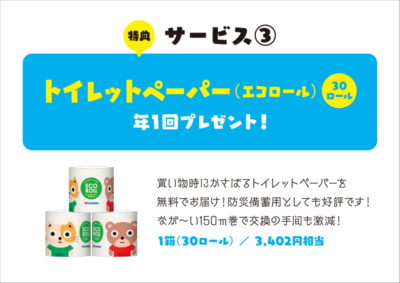 ③トイレットペーパー「エコロール」30ロール 毎年1箱プレゼント