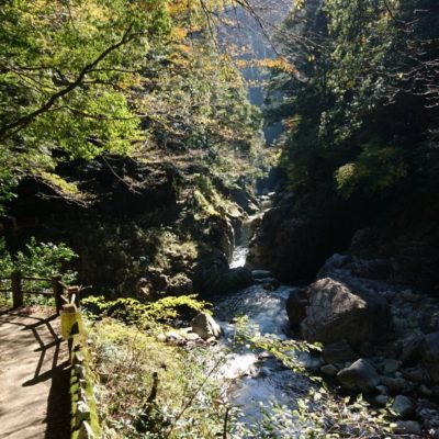秘境と言われることもある「三段峡」は、複数の滝やそびえ立つ大きな岩など、神秘的で壮大な自然を肌で感じられる穴場観光スポットです。山々に囲まれた場所にあるため、秋になると色とりどりの紅葉を楽しむことができます。