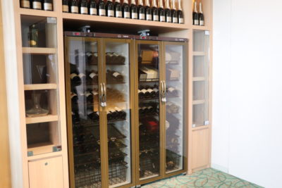 ちなみに、広島なだ万ではお酒も充実していました。入口近くの大きなワインセラーには、棚いっぱいのワインと日本酒が待機していましたよ。