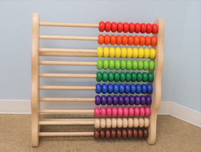 こちらは木製の「百玉そろばん」。数の概念を分かりやすくしたもので、各色10個、合計100個の玉がついています。カラフルな見た目に子供も興味を持つこと間違いなし♪数えながら玉を動かすことで、数字や足し算・引き算の考え方を楽しく学べます。