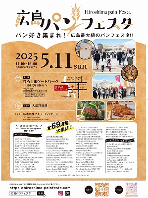 『ひろしまゲートパーク』では5月11日(日)に「広島パンフェスタ」が開催されます。全部で69店舗のパン屋さんが選りすぐりの商品を販売する、パン好きの方にはたまらないグルメの祭典です♪パン以外にもカヌレやハワイアンドーナツ、チーズケーキなどのスイーツのお店もありますよ。ぜひお気に入りのパンやスイーツを見つけに、ひろしまゲートパークへ足を運んでみてくださいね。