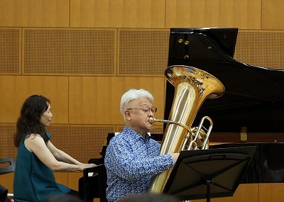 5/17(土)のプレコンサートには鈴木さん(テューバ)と土井さん(ピアノ)が登場