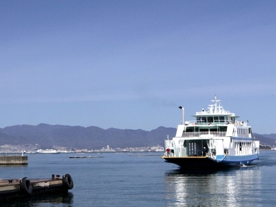 江田島の観光は、車なしでも行くことが可能ですが、今回の江田島観光のモデルコースでは車で移動し、フェリーに車ごと乗船して江田島に渡るルートでご案内します。フェリーを利用した方が、陸路より時間が短く、ドライバーの負担も少ないため、江田島観光を存分に楽しめますよ。広島港から江田島の三高港へはフェリーで約40分です。9:00広島港発の便に乗船すると、9:40分に江田島の三高港に到着します(2025年9月現在)。瀬戸内海の海風を感じながらのゆったりとした船旅は、お子さんの五感を刺激するいい機会になるのではないでしょうか。