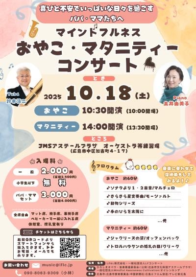 2025年10月18日(土) ※2回公演 おやこ/開場10:00 開演10:30 マタニティー/開場13:30 開演14:00 |