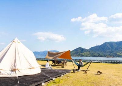 ホテル宿泊プランではなく、テント宿泊プランもおすすめです。キャンプ場はホテルの敷地内にあり、設備が整っているため快適に過ごせます。温泉にもすぐ入れるのが魅力。テントが設営済で、夕食・朝食付きのプランを選べば初心者も安心。気軽にキャンプ体験を楽しめます。夜は、大久野島の大自然の中で満天の星空を眺めれば、想像以上の感動を味わえますよ!