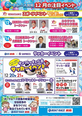 12月20日(土)・21日(日)は、サンフレッチェ広島とボートレース宮島がコラボして、サッカー好きにはたまらない企画が多数展開されます!