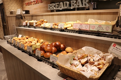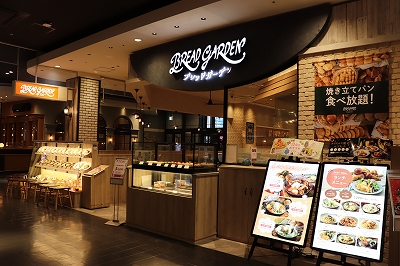 「ブレッドガーデン」は、絶品パスタやグラタン、ハンバーグなど、メインを注文すると、焼きたてのパンが食べ放題!