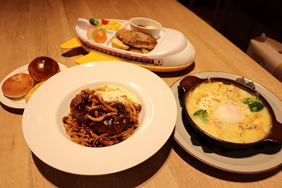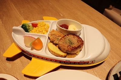 そして、テンションアップのキッズメニュー「お子様ひこうきプレート」。他にも、パスタのプレートやハンバーガーが作れる「お子様キッチン」も人気です。全てパン食べ放題&ドリンクバー付。さらに、3歳以下の子どもはパン食べ放題&ドリンクバー無料のうれしいサービスも♪