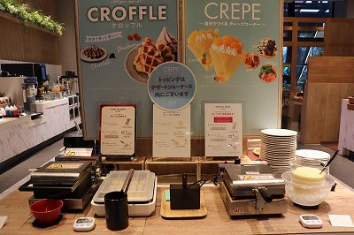 自分で作って楽しめるワッフル&クレープのコーナーも。