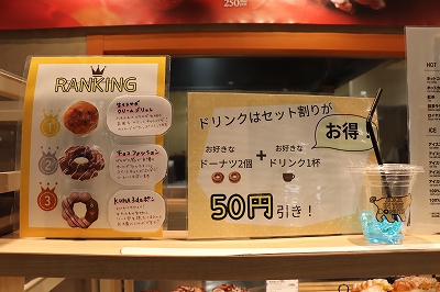 ジャック イン ザ ドーナツがあるGRAN TABLEは、フードコートのようにイートイン用のテーブルがたくさんあるので、その場で食べるのもOK。ドリンクメニューも豊富で、ドーナツ2個+ドリンク1杯で50円引きになるお得なセット割りがおすすめです。