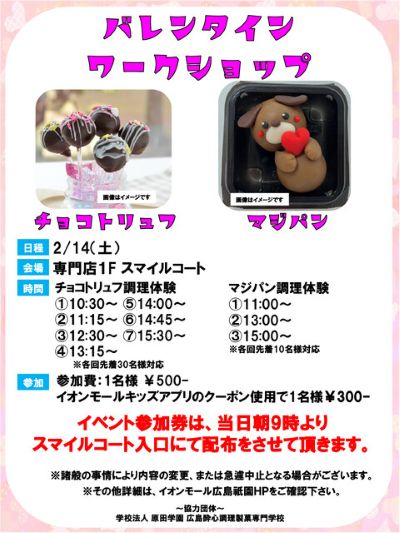 - 【イオンモール広島祇園】手作りチョコ勢におすすめ♡「バレンタインワークショップ」