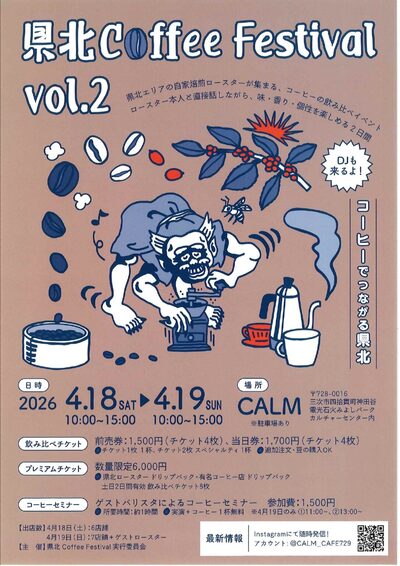 4月18日(土)・19日(日)、三次市にある『電光石火みよしパーク』では、コーヒー好きさんにうってつけのイベントが行われます。その名も「県北Coffee Festival vol.2」。県北エリアの自家焙煎コーヒーショップやバリスタが集結し、コーヒーの飲み比べができますよ。ショップごとに味や香りなどの個性が異なるので、お気に入りを見つけてみてくださいね。コーヒー片手に、ロースターやバリスタとの会話を楽しんではいかが?