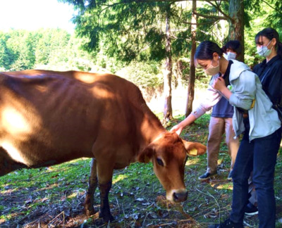 酪農体験では、ジャージー牛の乳搾りや、バター作りなど体験メニューも豊富。中でも好評を得ている「牧場トレッキング&カッテージチーズづくり」は、山の放牧地ならではの自然の中で自由に過ごす牛たちを見ながら、牧場の方のガイド付きで散歩が楽しめますよ♪