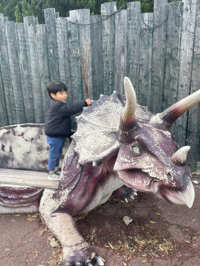福山市にある「みろくの里」は、遊園地や恐竜の人形が数多くあるダイナソーパークなど、複数の施設が融合したテーマパーク。昭和の街並みを再現したスポットもあり、親子だけでなく祖父母と一緒のおでかけにもぴったりです。遊園地は、小さな子ども向けのアトラクションが充実しているとママたちからも好評を得ています。