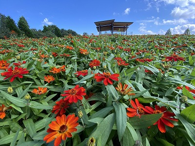 この時期に備北丘陵公園で見られるのは、コスモスだけではありません!“百日草”の名でも知られるジニアや、ニワトリのトサカに似ていることから名前がついたケイトウ(鶏頭)など、色鮮やかな花々が咲き誇ります♪