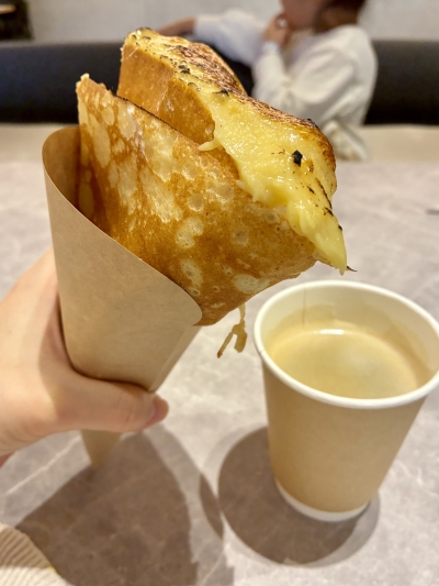食後のドリンクが飲みたいときや、スイーツを食べたいときにおすすめなのが、「ORIGAMI」です。バターをたっぷりと使用したベビーカステラや、注文を受けてから焼き上げるパリパリのクレープが大人気♡熟成焼き芋のWクリームをブリュレに仕上げたプレミアムクレープは、小さな子どもにも食べさせやすい優しい甘さが絶品でした。カフェ系4店舗の中でも、デロンギで淹れた本格コーヒーがお手頃価格なところが嬉しいポイントです。