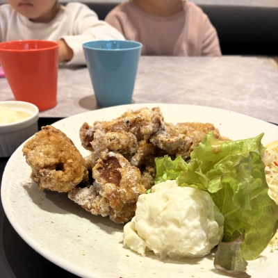 食事系の店舗で子連れにおすすめなのが、揚げ物メニュー専門店「カロリーは正義」です。全10種類の定食メニューに加え、6種類の丼、カレー、ラーメンなどの豊富なラインナップが揃っています。取り分けももちろんできますが、唐揚げプレートにゼリーやジュースが付いたお子様セットもあるのが有難いですね♪