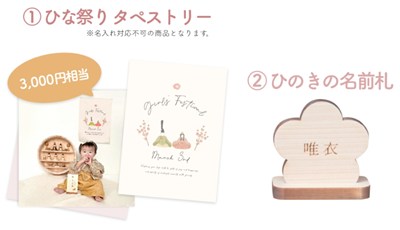 なお、「人と木」の雛人形を2025年12月31日までに購入すると、うれしい特典も。早期特典として、非売品の〈ひのきの名前札〉または3,000円相当の〈ひな祭りタペストリー〉 を選べます。こちらの特典もひとつひとつ手作り。数に限りがあるため、早めの購入がおすすめです。