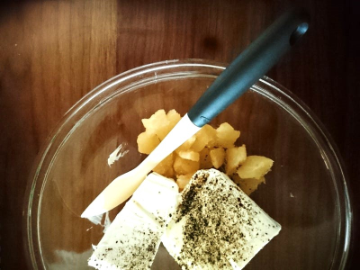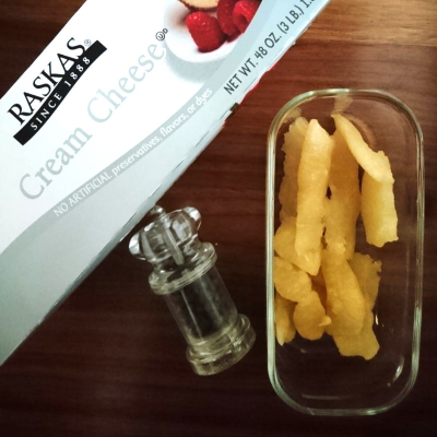 クリームチーズと数の子、アクセントにブラックペッパーを加えて混ぜるだけ。数の子に味が付いているので、味付け不要です。