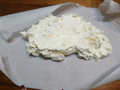 クッキングペーパーに包んで形を整え、冷蔵庫で冷やすと完成!食べるときは包丁でカットしてくださいね。