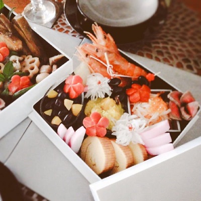 黒いお重に盛り付けられたおせち、美味しそうに見えますよね。実家に眠っているお重があったら、ぜひ使ってみましょう。
