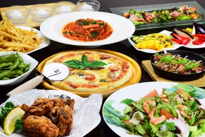 食事の提供は、大皿に入れてバイキング方式で食べたいものだけを食べてもらうようにしました。みんなが食べられるように、品数は多めに和洋折衷の料理を食卓に並べました。