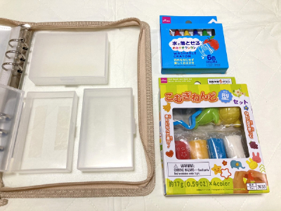カードケースには、クレヨンとこむぎねんど型セットを入れます。