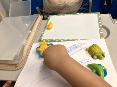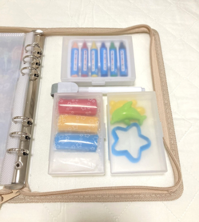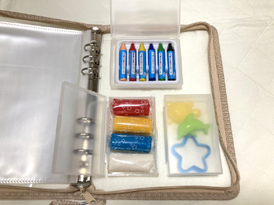 お出かけファイルの良い点は、コンパクトで子どもの好きな物をまとめて持ち運べるところ。気に入った息子は、今回の旅行中ずっと自分でファイルを抱えていました!ファスナーが付いているため、中身を落とす心配がないので安心です。外食先の待ち時間もお出かけファイルの出番。お友だち親子とランチをしたのですが、3歳のお友だちも興味津々でいっしょにお絵描きを楽しみました♪また、普段はしないような遊び方を生み出していたのが印象的でした。いつもは、ねんど遊びならねんどだけを出して遊びますが、今回は同時にいろいろなアイテムを使えたのがポイント。