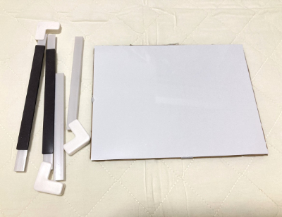 そこで、ホワイトボードのフレームを外して挟むことにしました。フレームは手で簡単に取り外せましたよ♪ボードの縁が尖っているので、手を切らないように注意してくださいね。