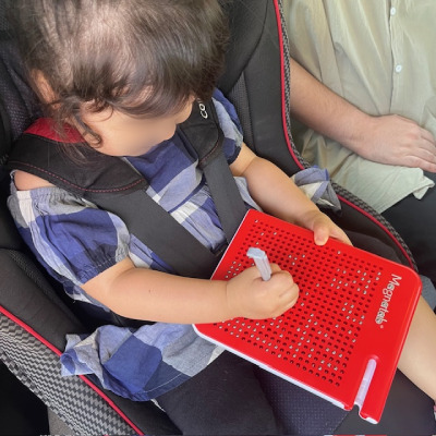 ペンが収納できてコンパクトに持ち運べる上、電池不要な点がうれしいポイント。部品が散らばる心配がなく、車や電車、飛行機など移動の相棒として大活躍しているおもちゃです!ただ、振り回すとジャラジャラ音がするので、静かな場所では注意が必要なことも。対象年齢は3歳以上ですが、我が家では大人の目の届く範囲で、2歳から楽しく使っています。