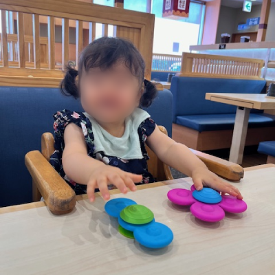 我が家は、レストランやカフェなど、「お出かけ先の待ち時間で使えそう」と思って購入しました。テーブルにピタッと付くことが特徴で、落として何度も拾う手間もなし!大きな音が出ないため、周囲の迷惑にもなりません。お出かけ時のグズリ対策おもちゃとしても役立ちました。3個セットであることも大きな魅力です。