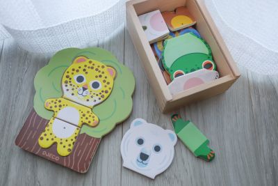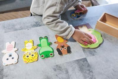 可愛らしい動物モチーフが子どもの好奇心をくすぐり、顔・手・体のパーツを組み合わせることで、楽しく遊びながら考える力も育めます。