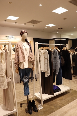 「オンワード樫山」が展開する通販サイト「ONWARD CROSSET」の商品を実店舗で扱う複合型ショップ。店舗にはニュアンスカラーを中心に、トレンド感のあるファッションが揃います。